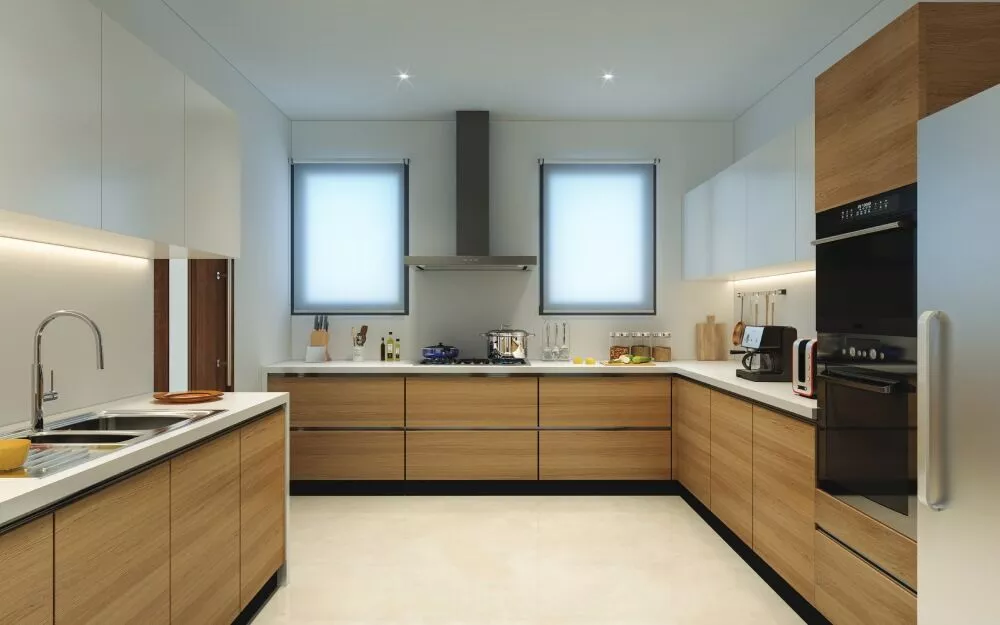 Imported high quality modular kitchens fully fitted withbuilt-in appliances like microwave, oven, dishwasher etc.